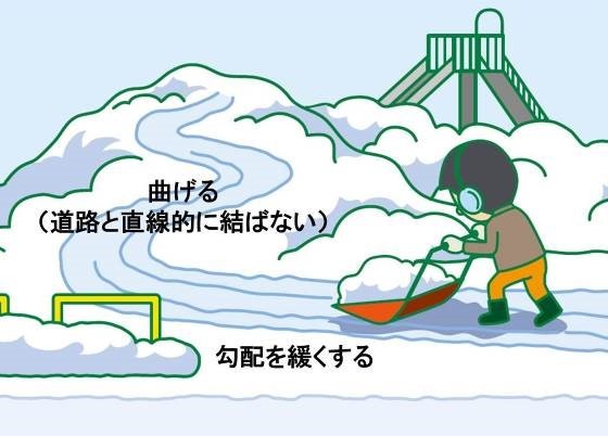 利用するときは、雪を公園手前など公園外に置かず、公園内に置いてください。